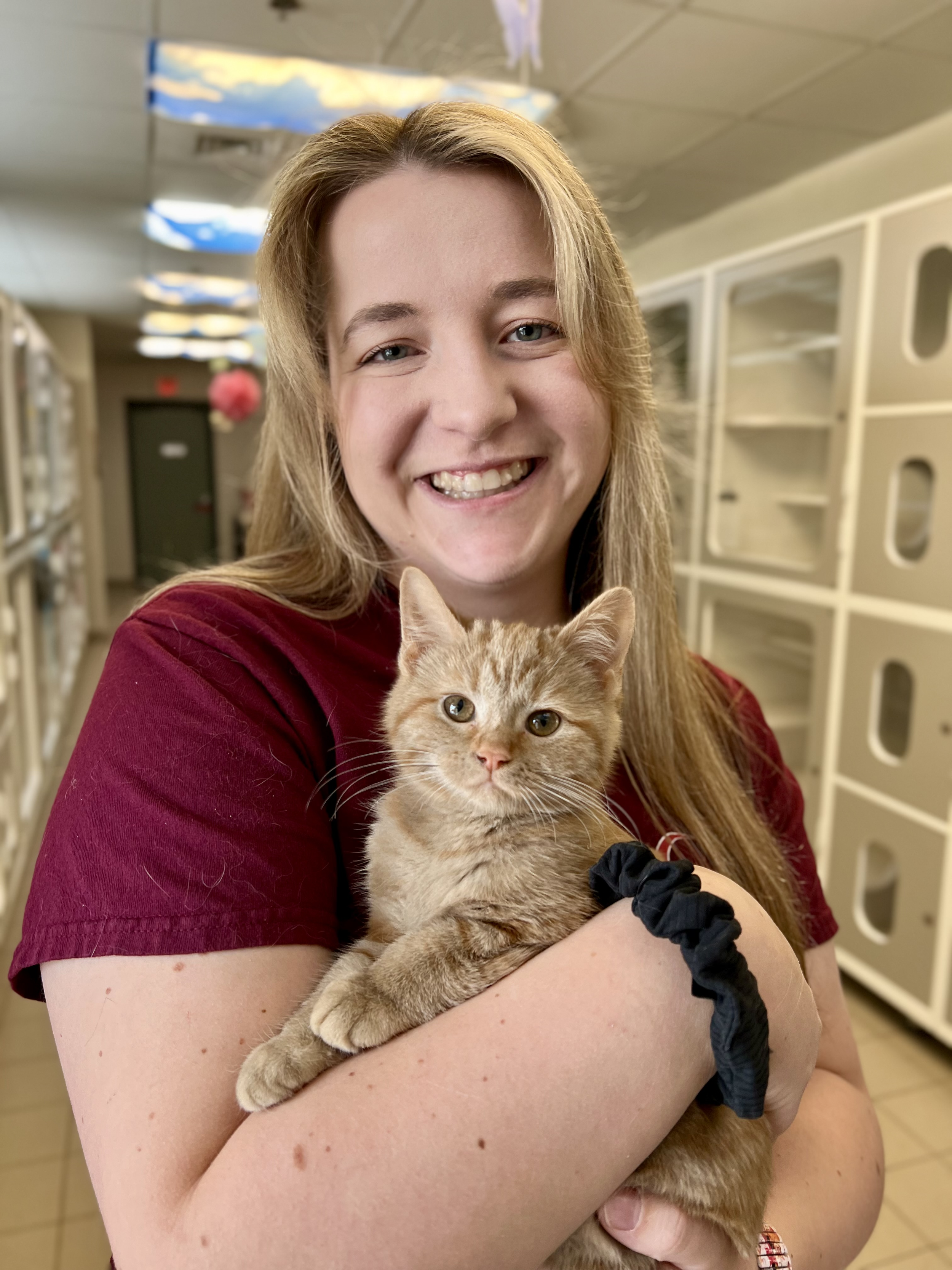 Esther has loved animals for as long as she can remember. She grew up in South Haven with childhood cats, and after they passed away, she began fostering and volunteering in their honor—an experience that eventually led her back to school to earn her bachelor’s degree in Animal Science from Michigan State University (Go Green!).